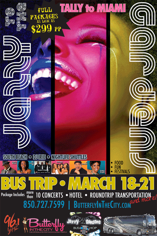 Butterfly in the City and 96.1 Jamz, have linked up ( joined forces) to provide nonstop transportation from Tallahassee to Miami Fla, and rooming packages to this annual cyaan (cant) miss event.
